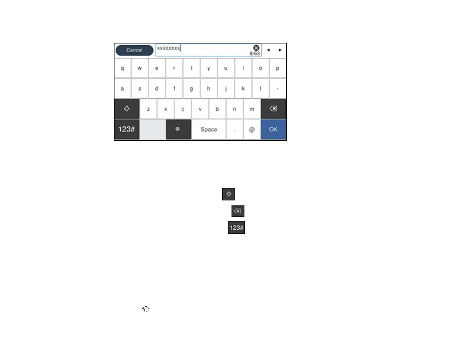• To delete the previous character, select .