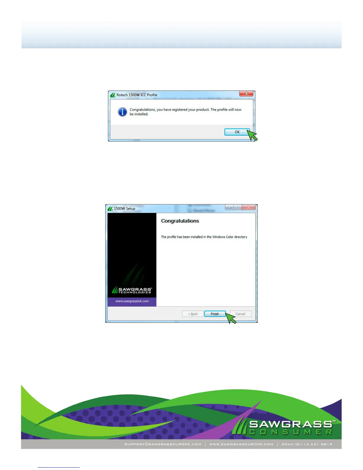 Congratulations! The Rotech Epson 1500W WinProle installation is complete. Please proceed to the Con-