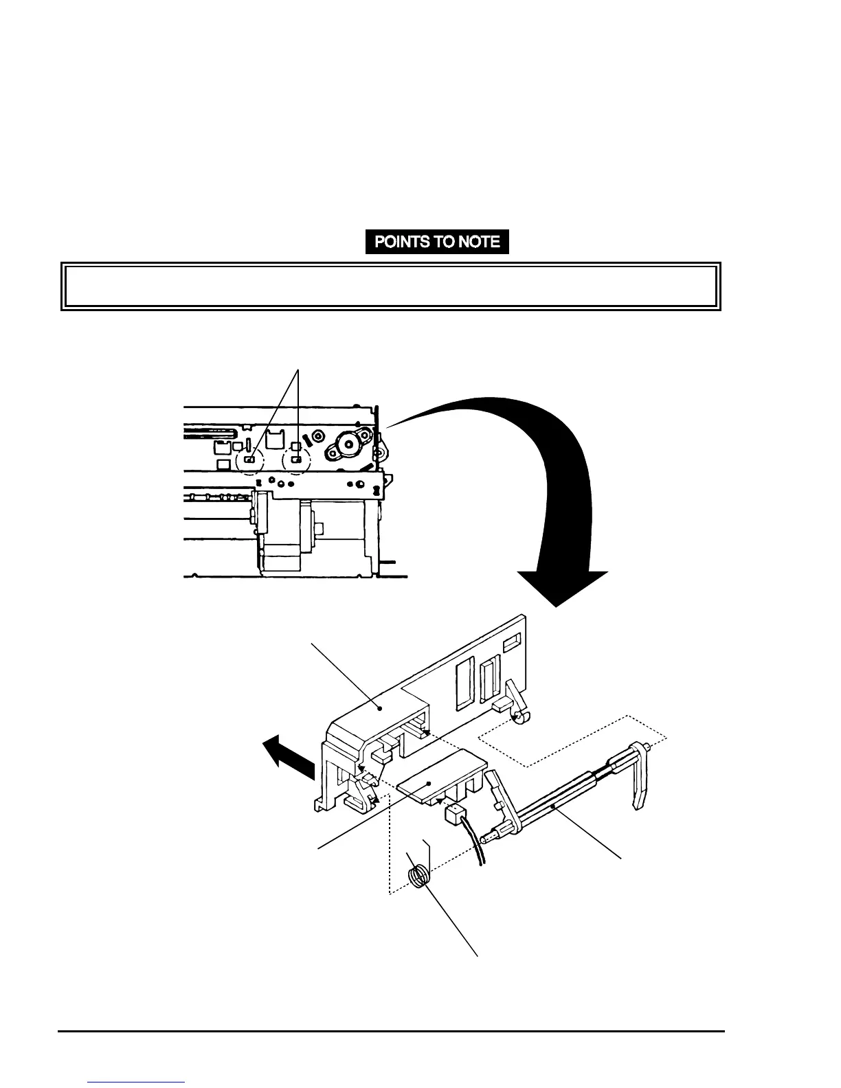 During assembly, make sure the tip (sensor part) of the sensor lever is in the hole in the paper guide