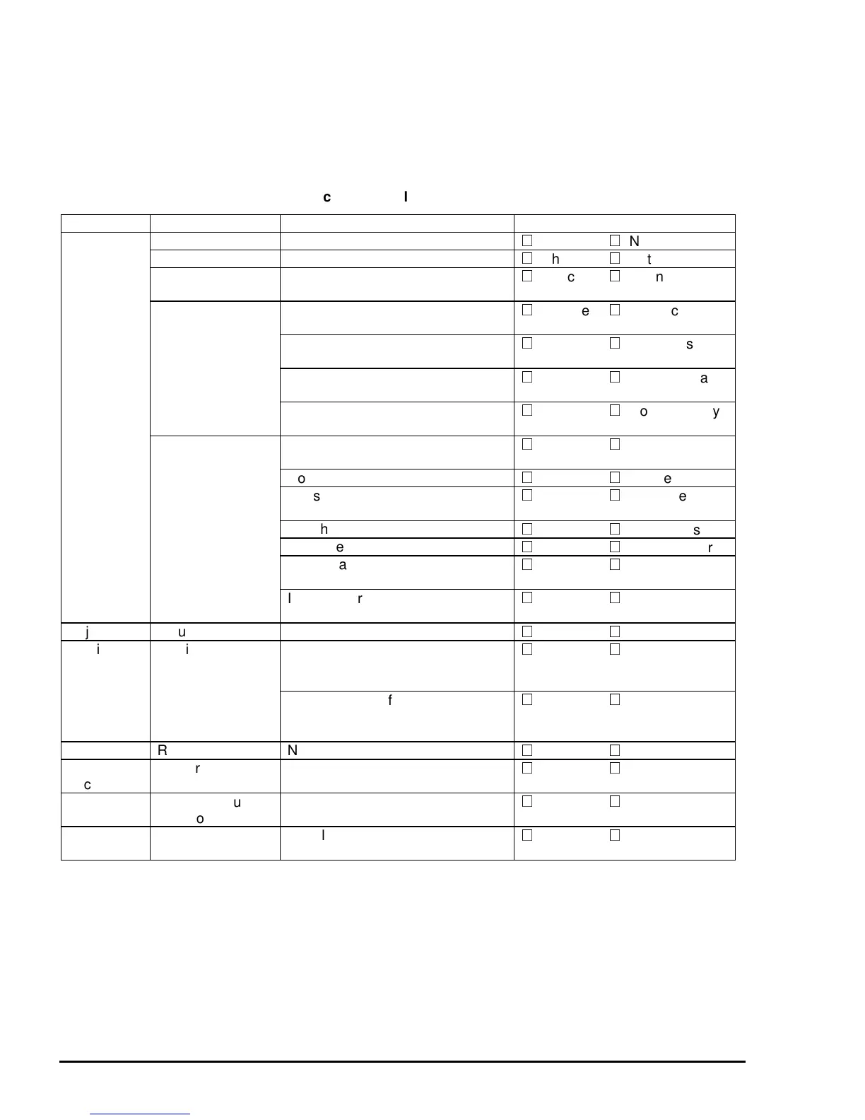 Category Component Item to Check Is Check Required?