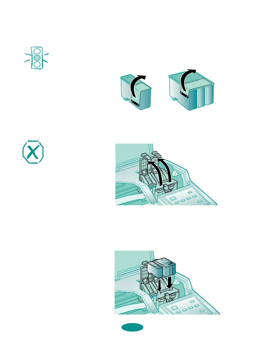 5. Lower the ink cartridges into their holders with the labels