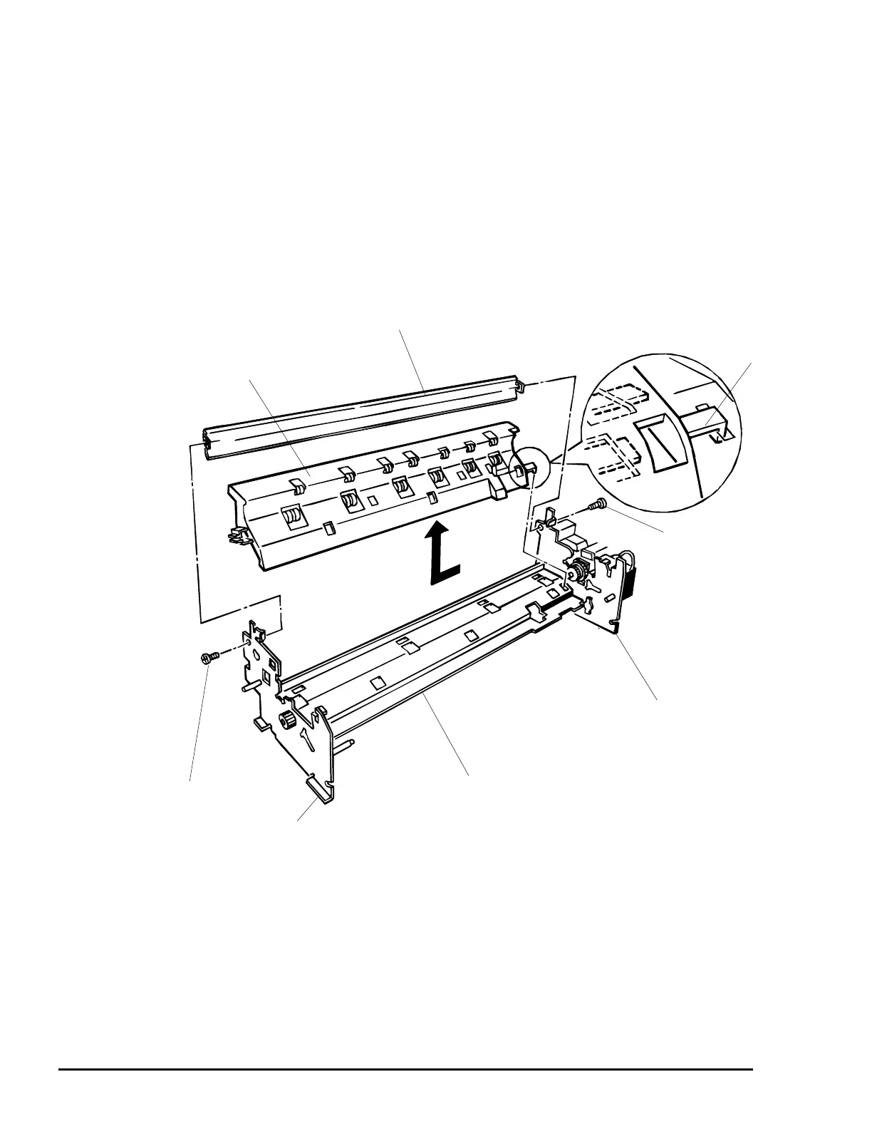 7. Release the hook securing the rear paper guide to the right end of the bottom frame. Then shift the rear