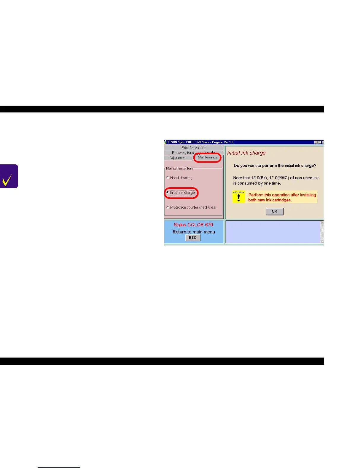 1. From the Maintenance menu, select “Initial Ink Charge”. The following