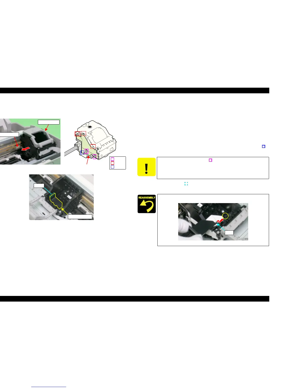 3. Remove Head Cable Cover downward while releasing the lower tab (x1, )