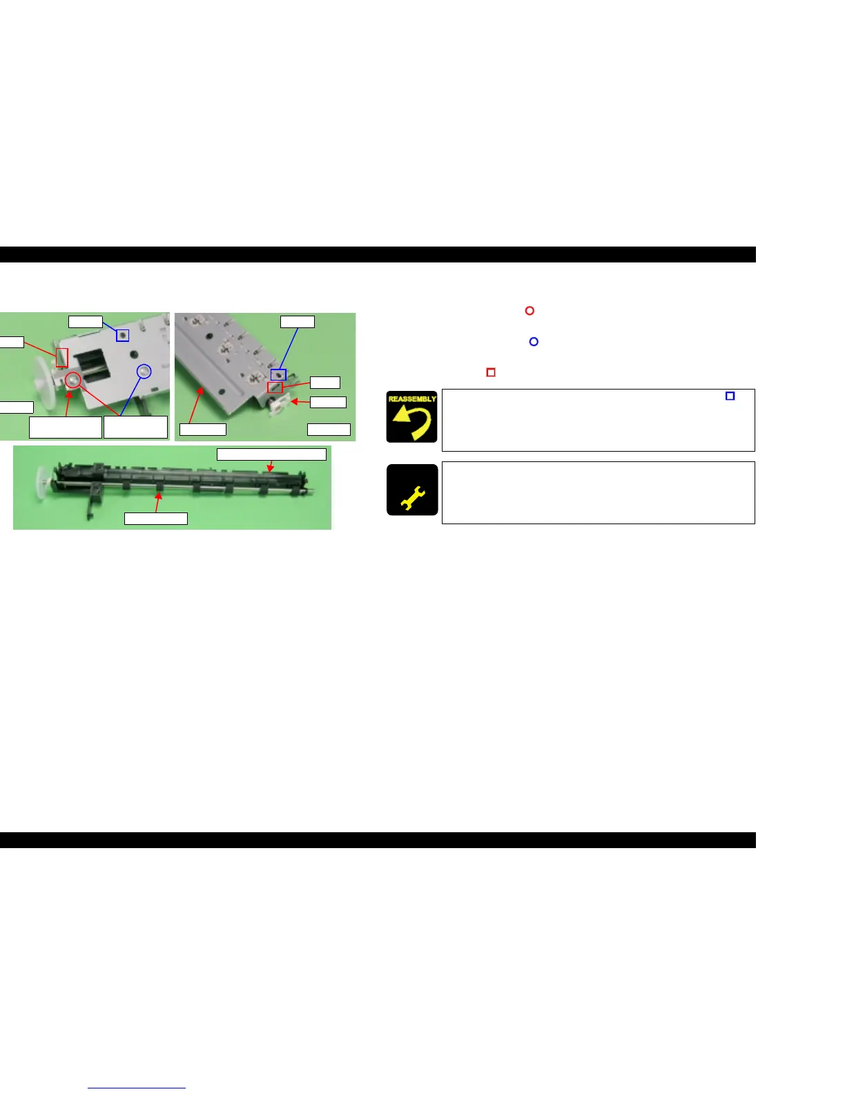 8. Remove the screws (x1, ) for securing Front Paper Guide Support.
