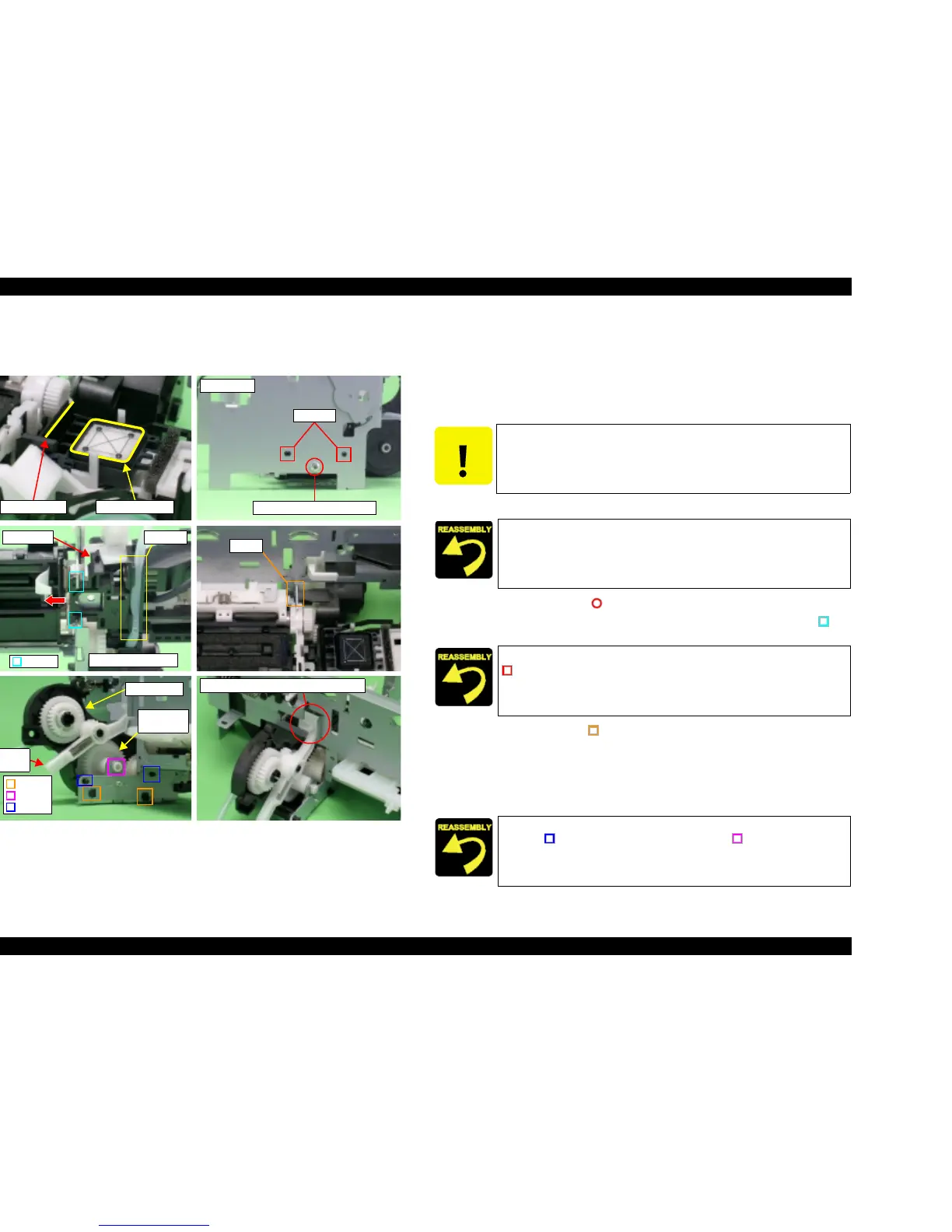 3. Slide Cap Unit to Main Frame interior, and then release the hooks (x2, ) of