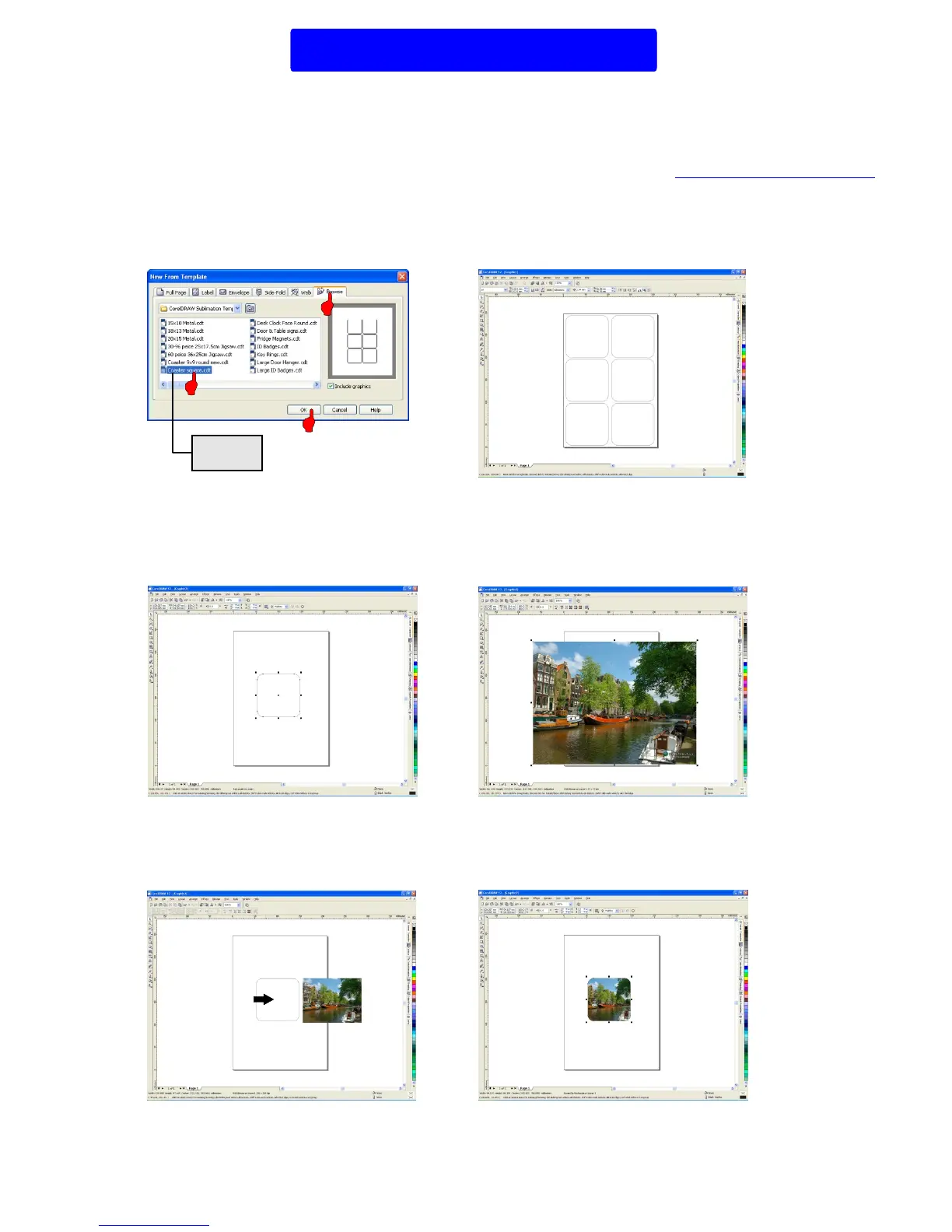 You will now see six square coaster templates open as in diagram 2. For this exercise we will work with one only.