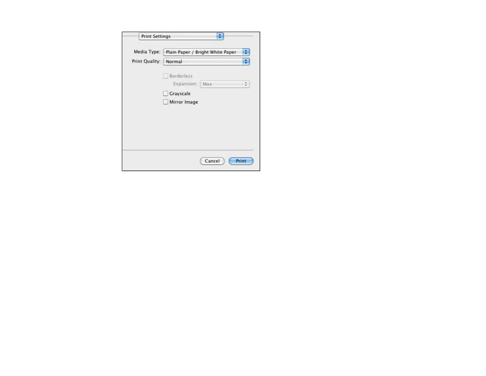Print Options - Mac OS X 10.5/10.6/10.7
