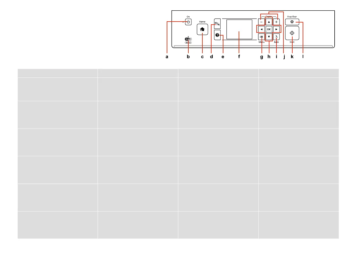 Cancels/returns to the previous menu. Sets the number of copies. Starts copying/printing/scanning. Stops copying/printing/scanning or reset
