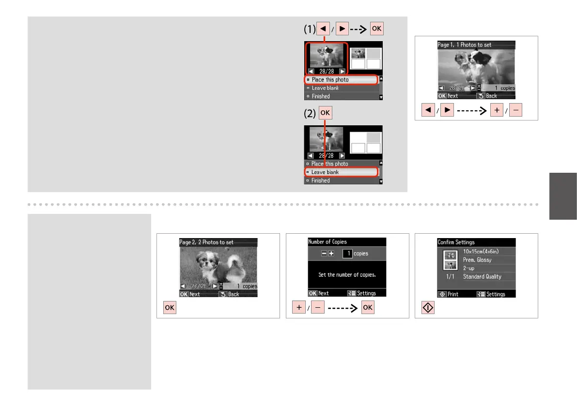 If you select Place photos manually, layout a photo as shown in (1) or leave a