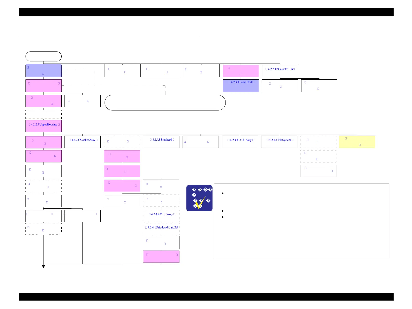 See Flowchart 4-2 Disassembling Flowchart (2) (p100) for