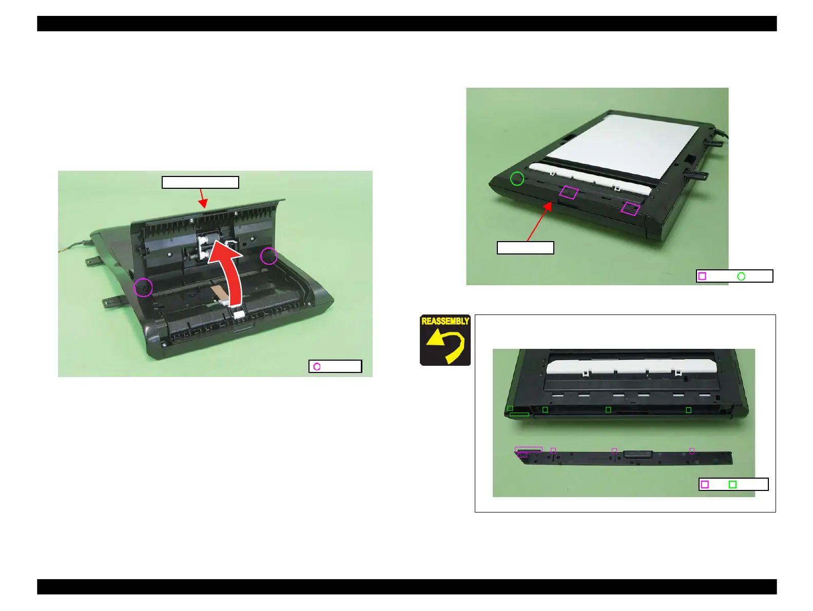 Release the hooks (x2) and the dowel (x1) that secure the ADF Cover L, and