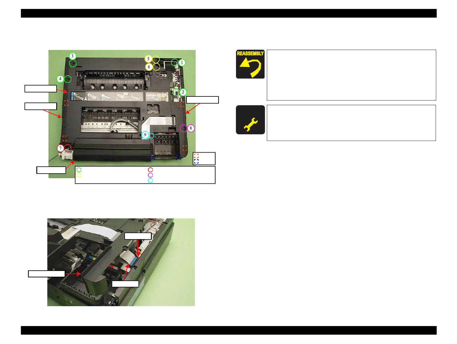 Remove the screws (x9) that secure the Upper Housing. (See Fig. 4-17.)