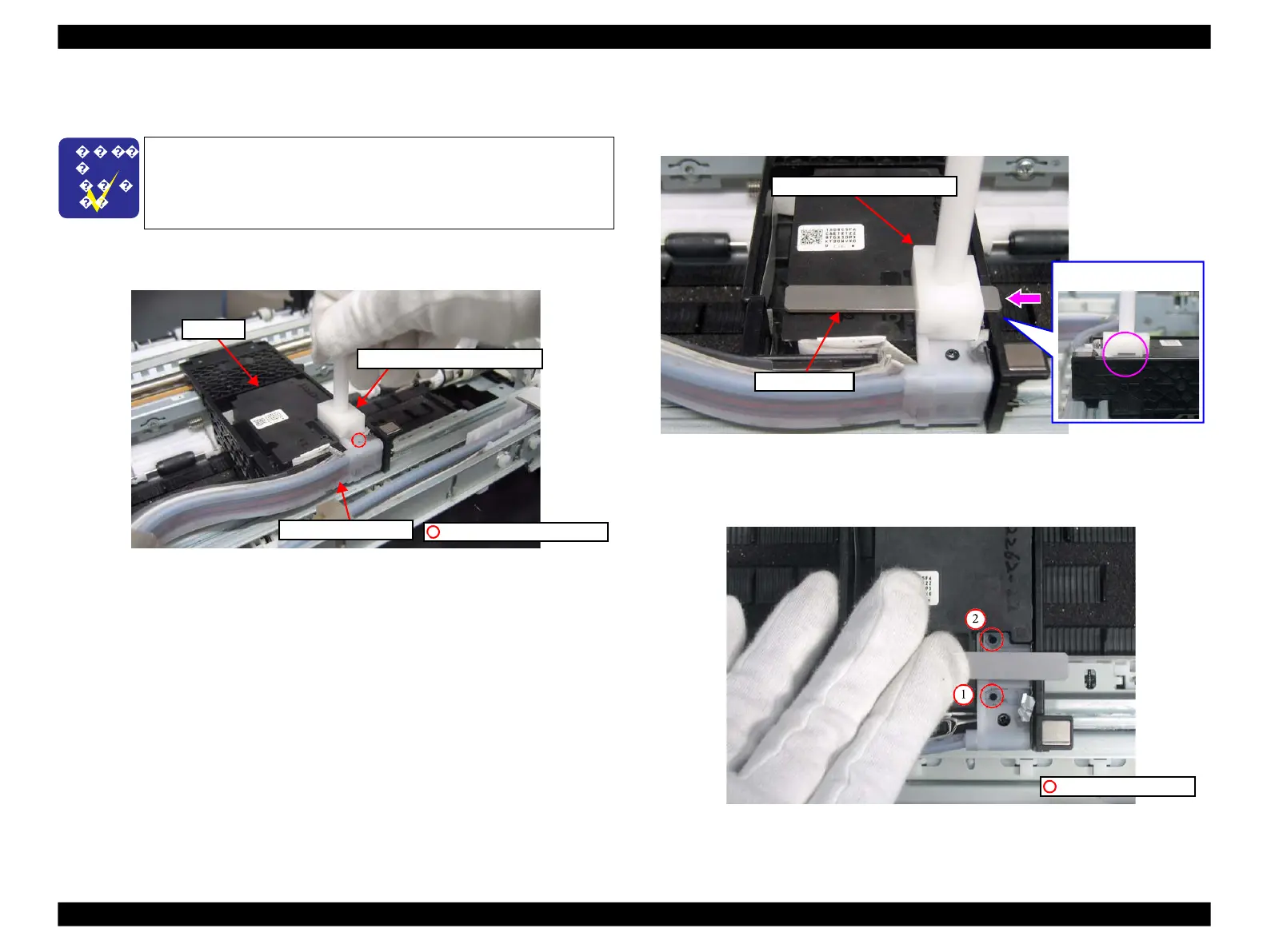 Secure the Ink Supply Tube Assy with the screw with the Ink Supply Tube