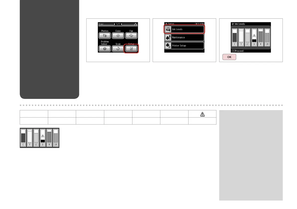 Cyan Yellow Light Cyan Black Magenta Light Magenta Ink is low.