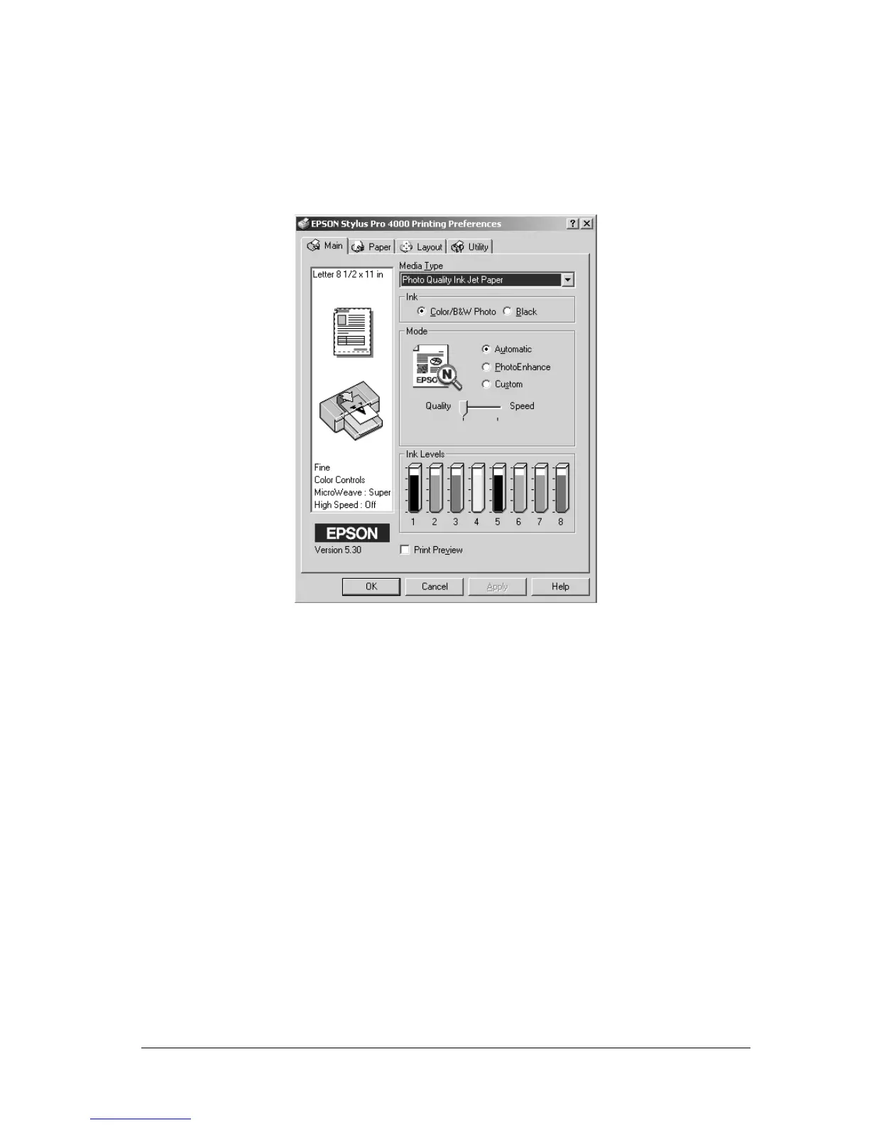 of the printer driver, Photo Quality Ink Set is displayed as the