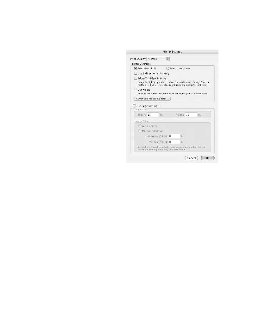• Choose Cut Media to allow the printer to use the printer’s cut