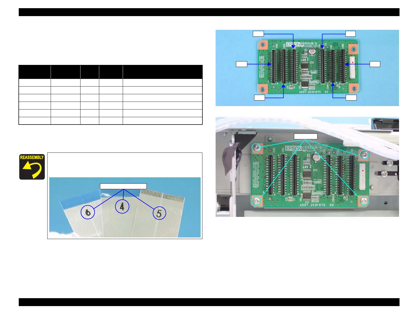 Epson Stylus Pro 4450 - C593_SUB-D Board; Connectors;Harnesses Connected to C593_SUB-D Board; C593_SUB-D Board Connector Positions; C593_SUB-D Board Removal