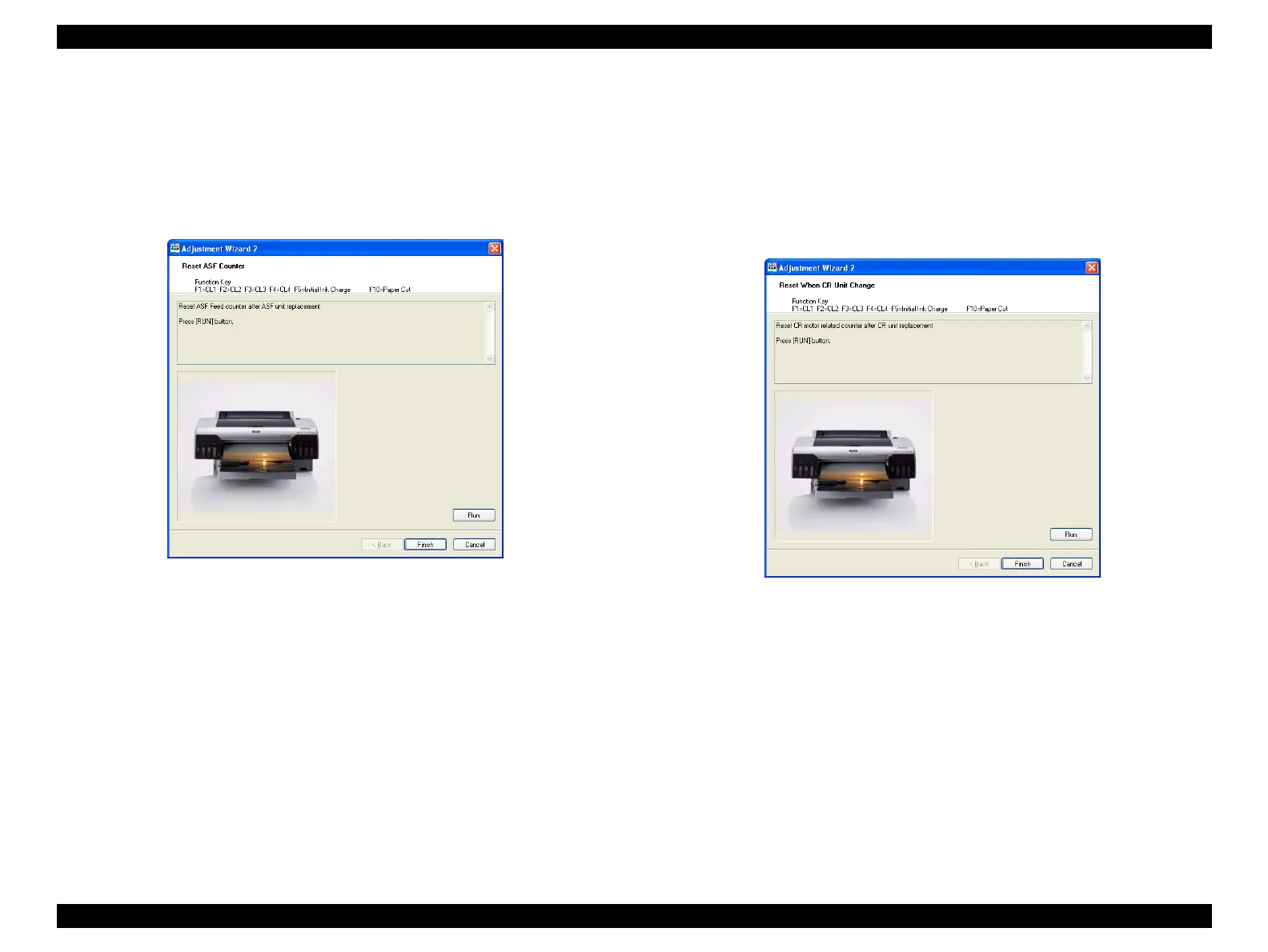 Epson Stylus Pro 4450 - Reset ASF Counter; Reset When CR Unit Change; Reset ASF Counter Screen; Reset When CR Unit Change Screen