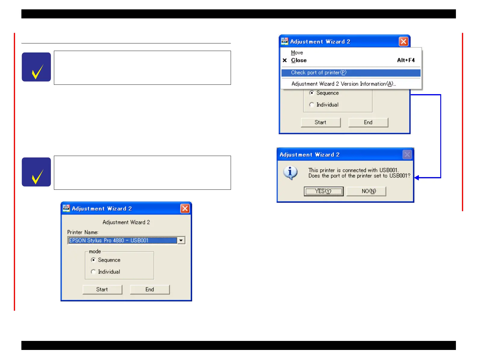 Epson Stylus Pro 4450 - Device ID Setting; [Select Printer Name] Screen; [Port Check on Connected Printer] Screen