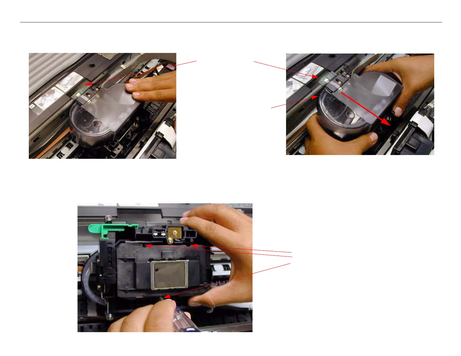 8. Move the Carriage Mechanism at the removal slot as shown. Compress the Tension Springs