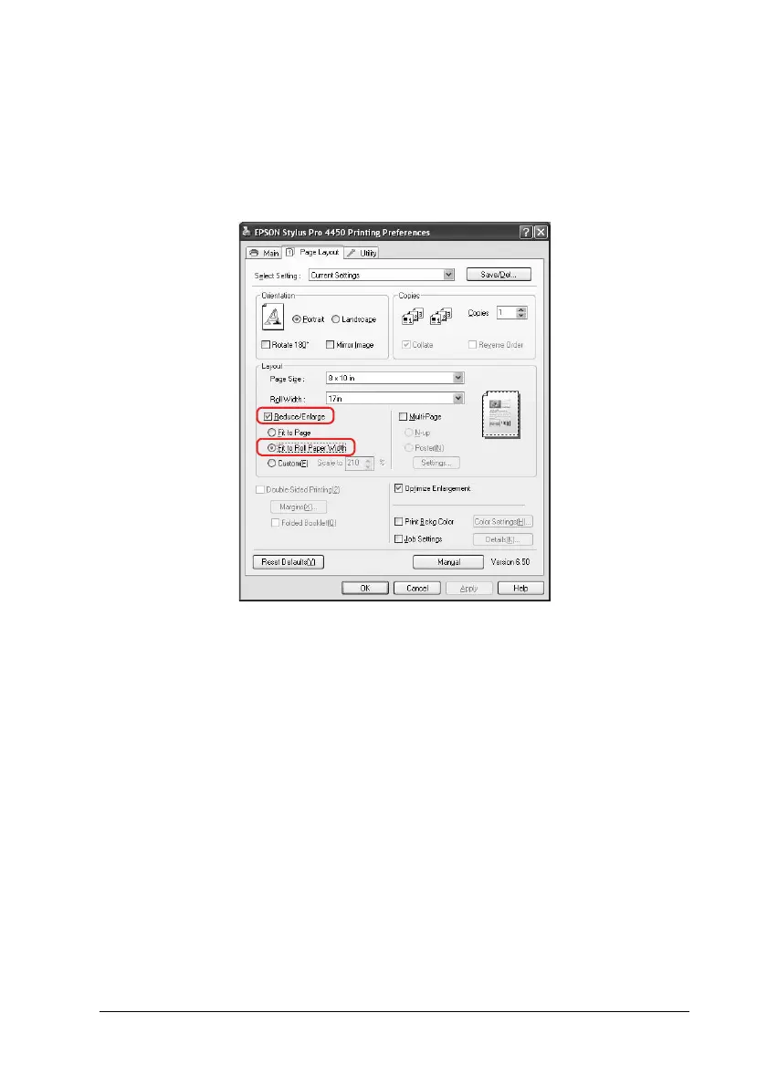 3. Select Reduce/Enlarge, and then click Fit to Roll Paper