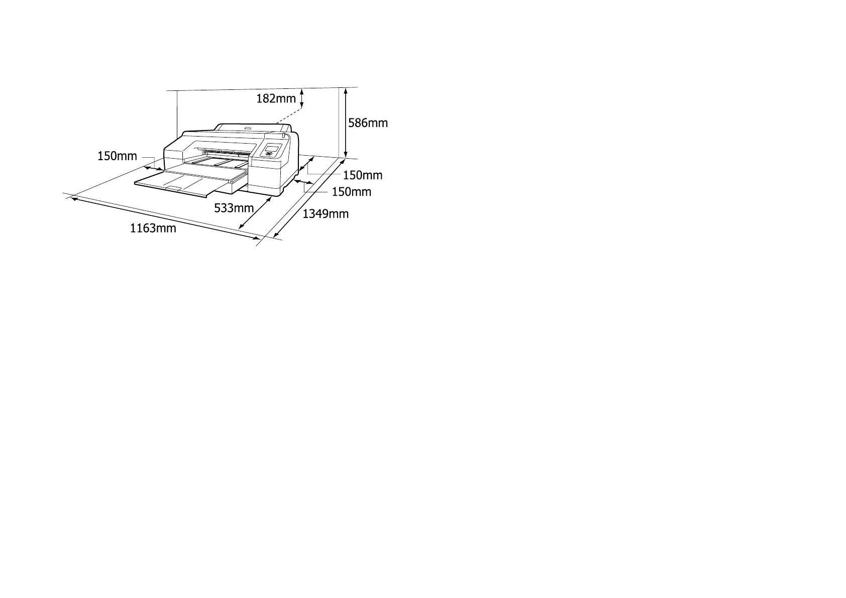 Leave adequate room as shown in the table for setting up the printer. In addition, more room is O