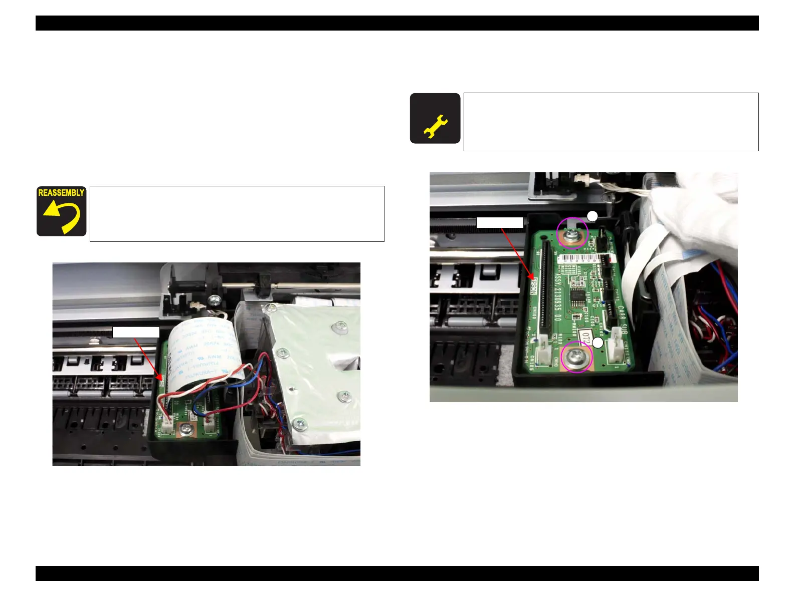 7. Remove the two screws that secure the SUB Board, and remove the SUB Board.