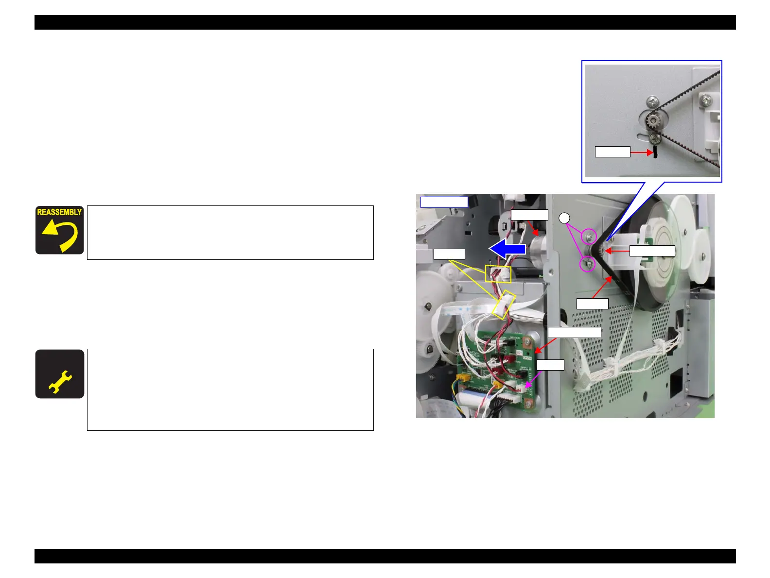 8. Detach the PF belt from the pinion gear of the PF Motor.