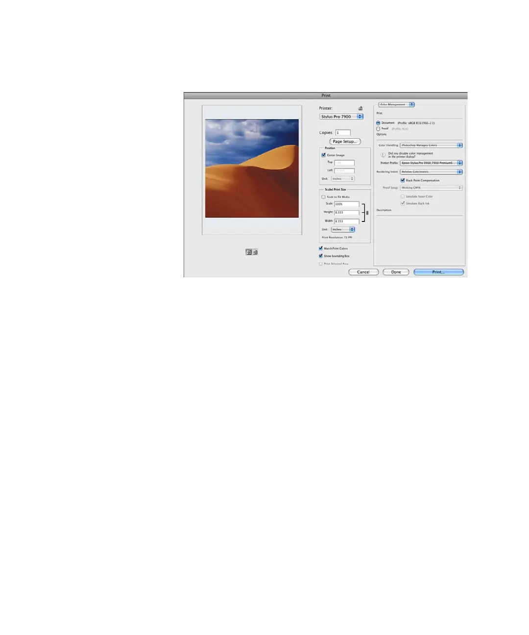 Color Handling, select Let Photoshop Determine Colors or