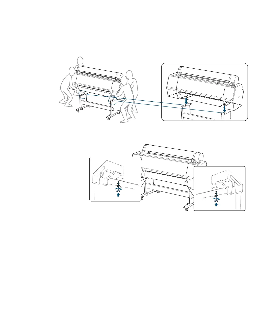 4. Mount the printer on the stand as shown, aligning the pegs with the