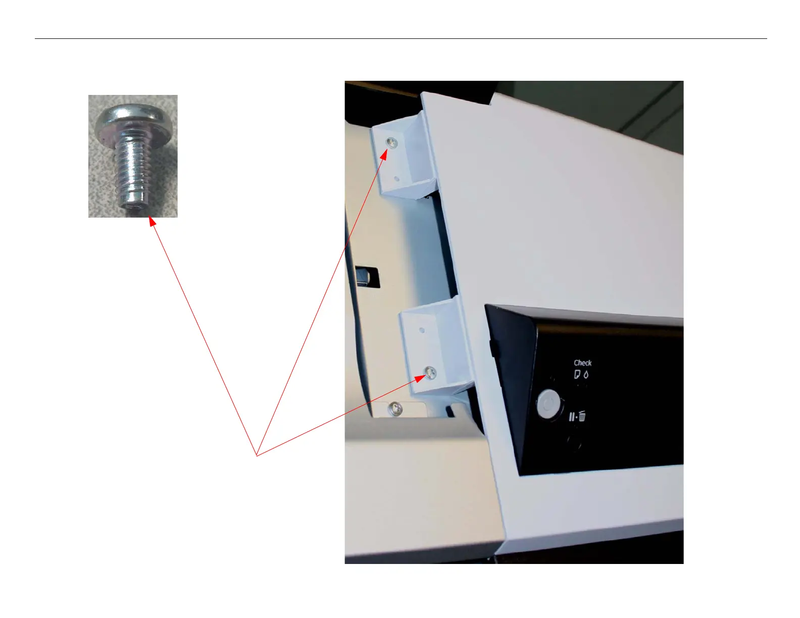 6. Remove 2 Screws that fastens the top of the Right Side Cover to the Printer.