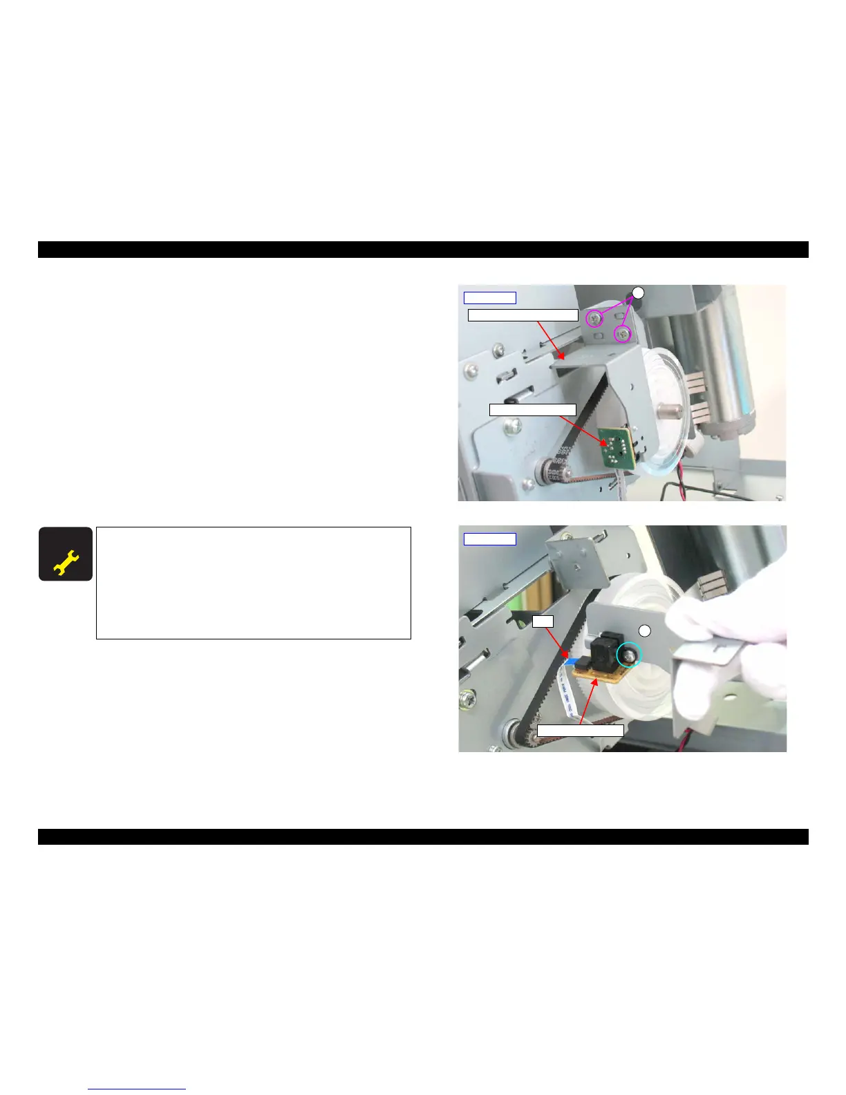 4. Remove the two screw that secures the PF Encoder Sensor Holder, and remove the
