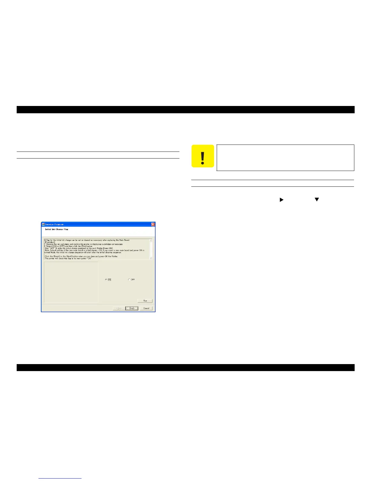 2. Start the Service Program and select Initial Ink Charge Flag ON/OFF from