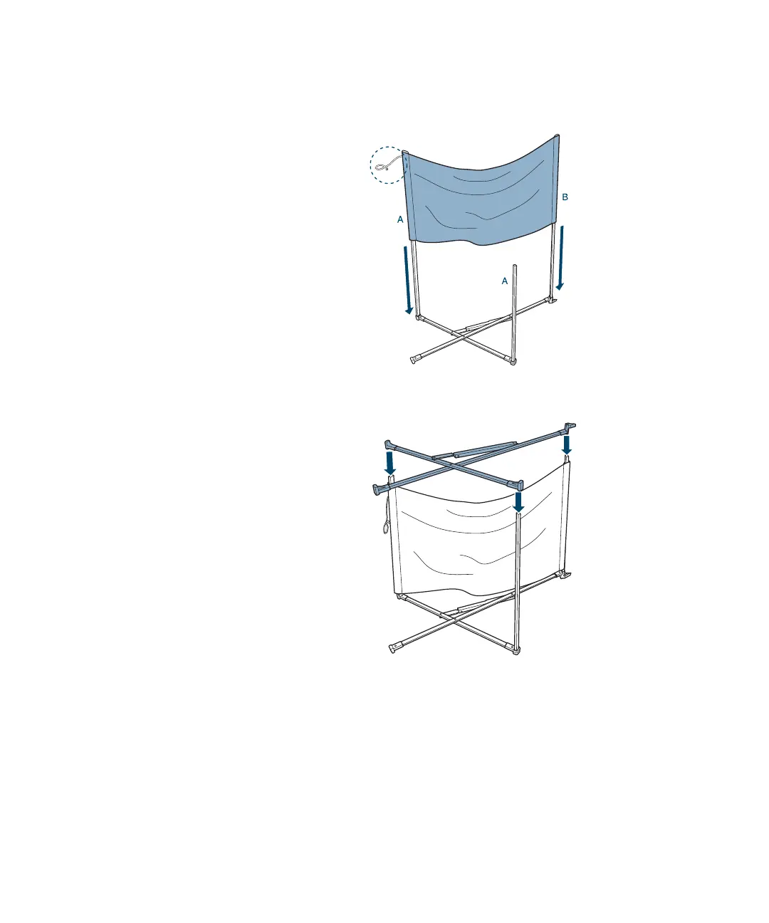 5. Feed the basket cloth onto rods A and B as shown.