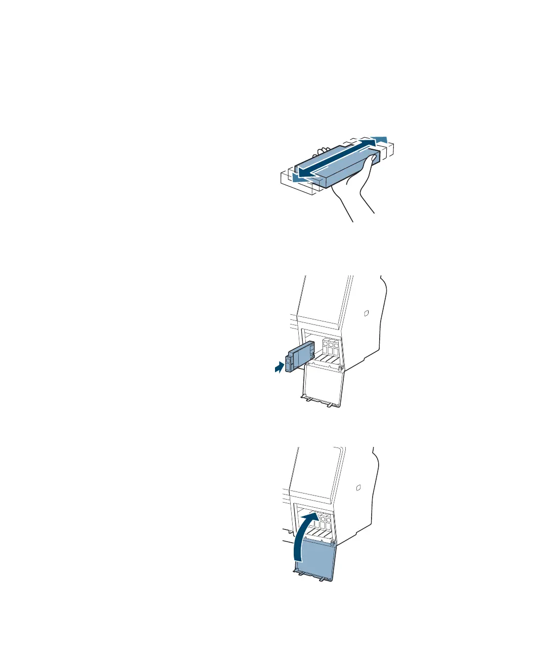 7. Hold the cartridge with the arrow pointing toward the printer. Then
