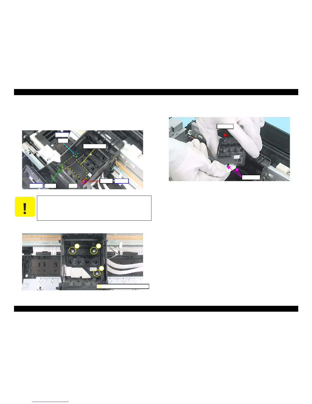 7. Remove the screws (x3) that secure the Printhead, and lift the Printhead with