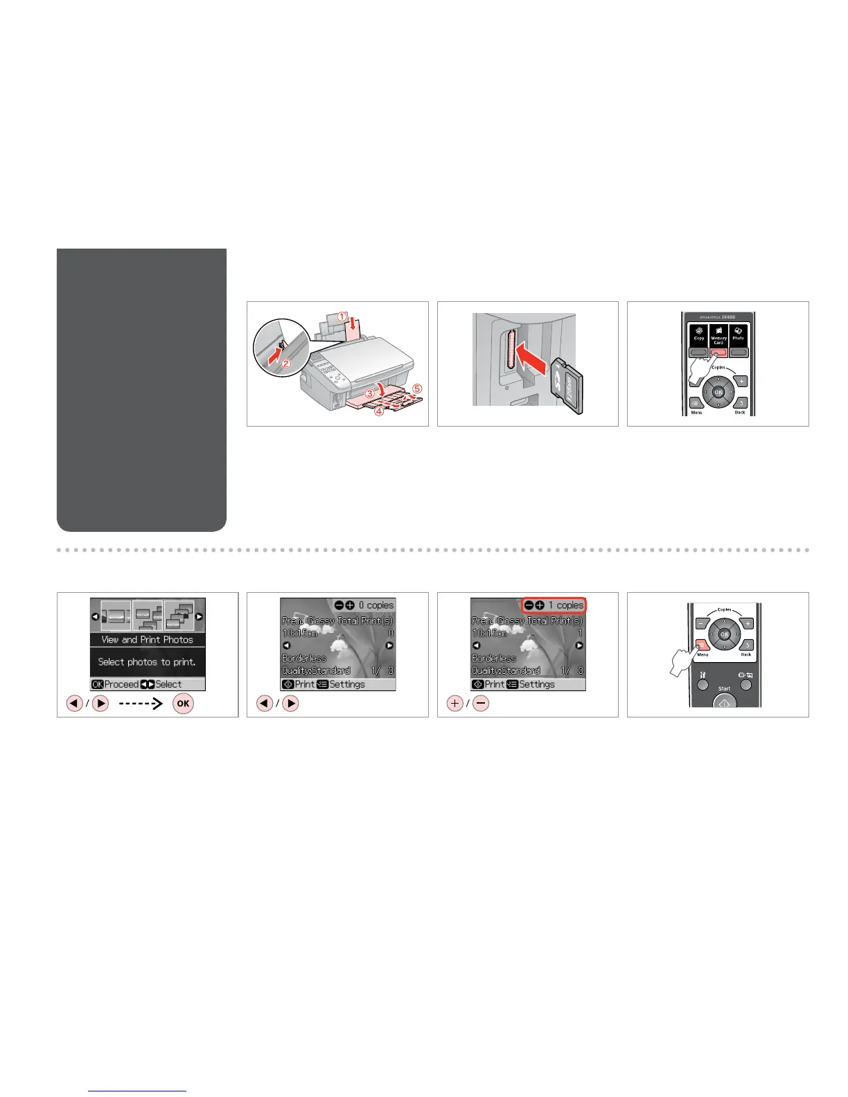 Load photo paper. Insert a memory card. Enter the Memory Card mode.