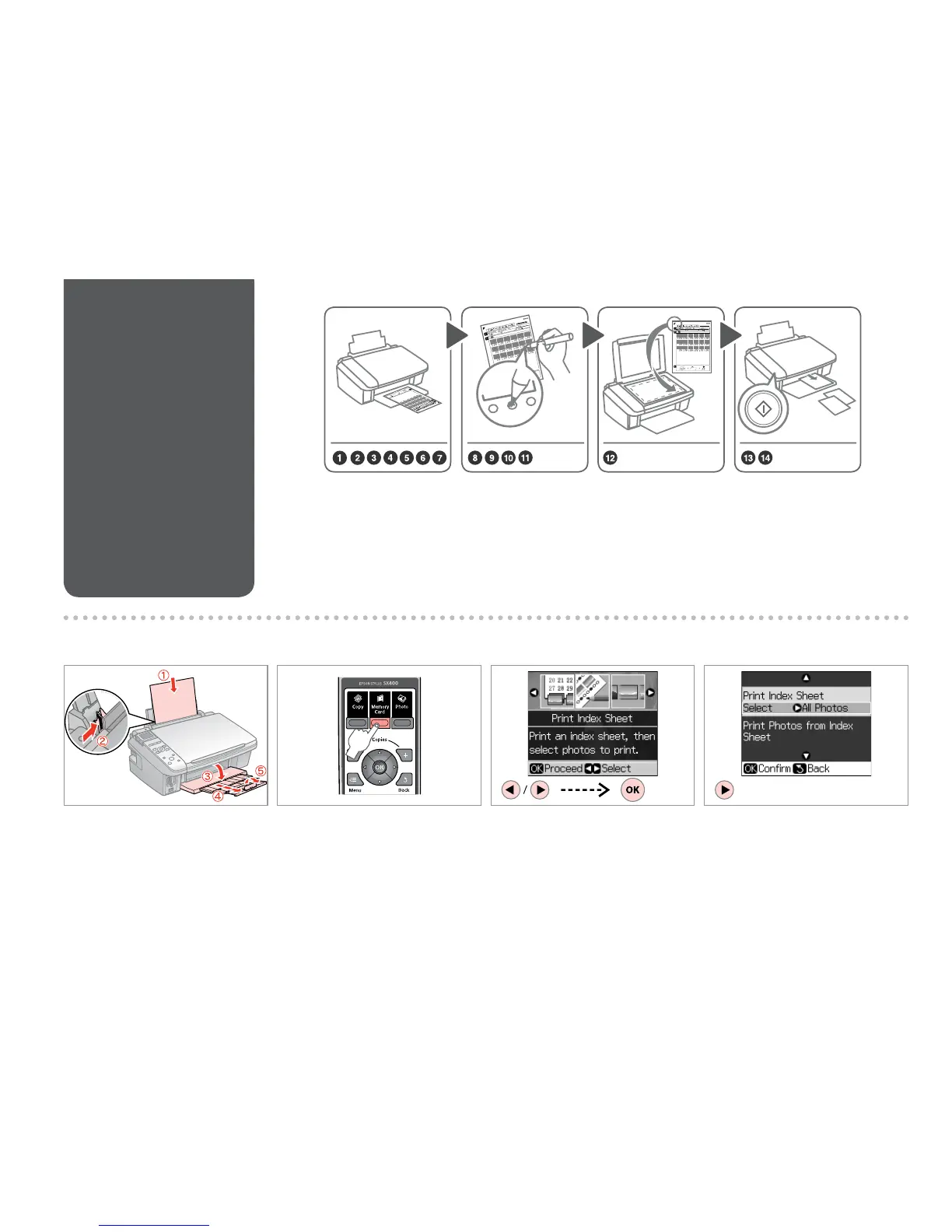 Enter the Memory Card mode. Select Print Index Sheet.Load A4-size plain paper.