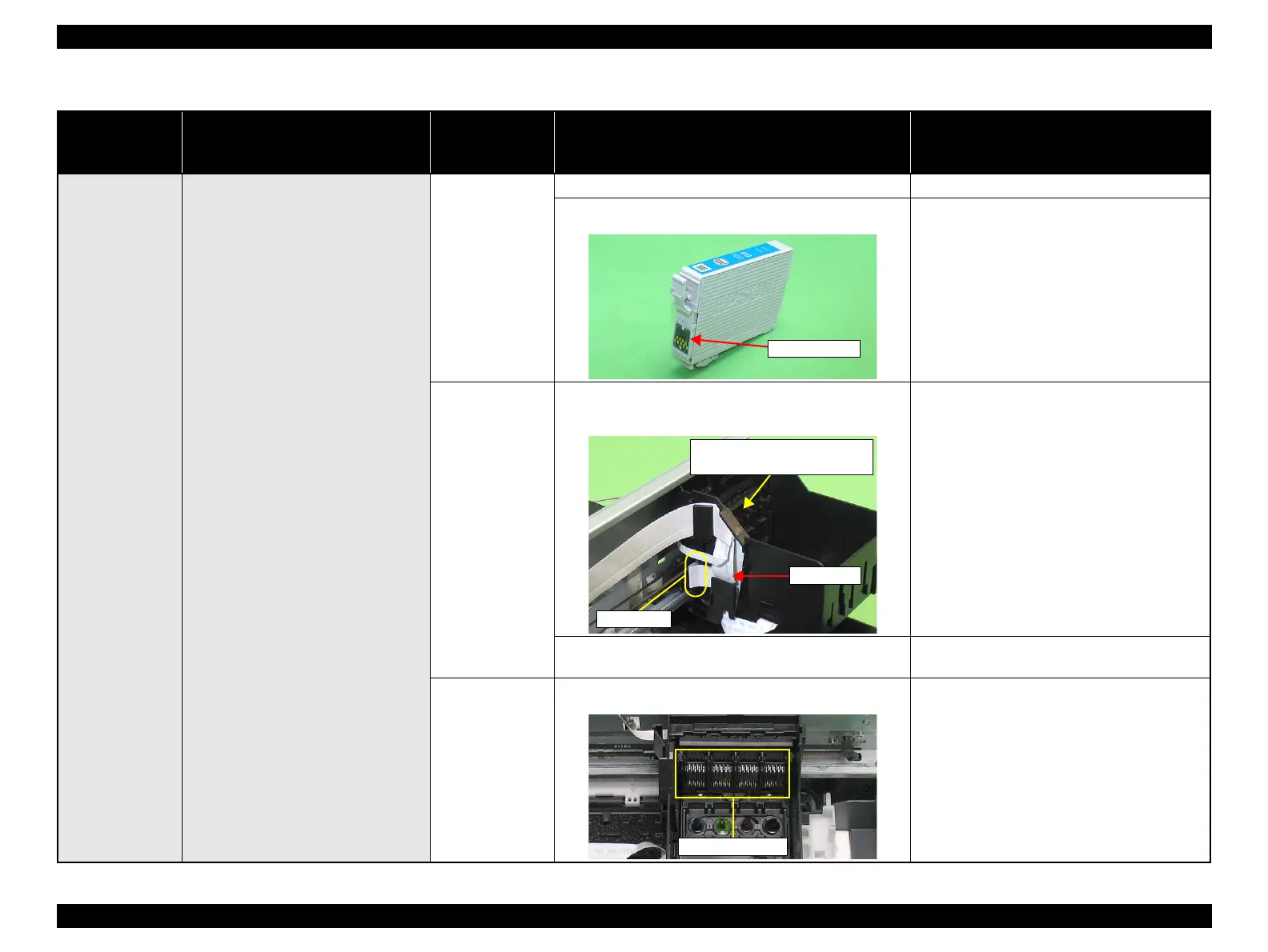 Table 3-7. Check point for Ink out error / No ink cartridge error read error / write error according to each phenomenon
