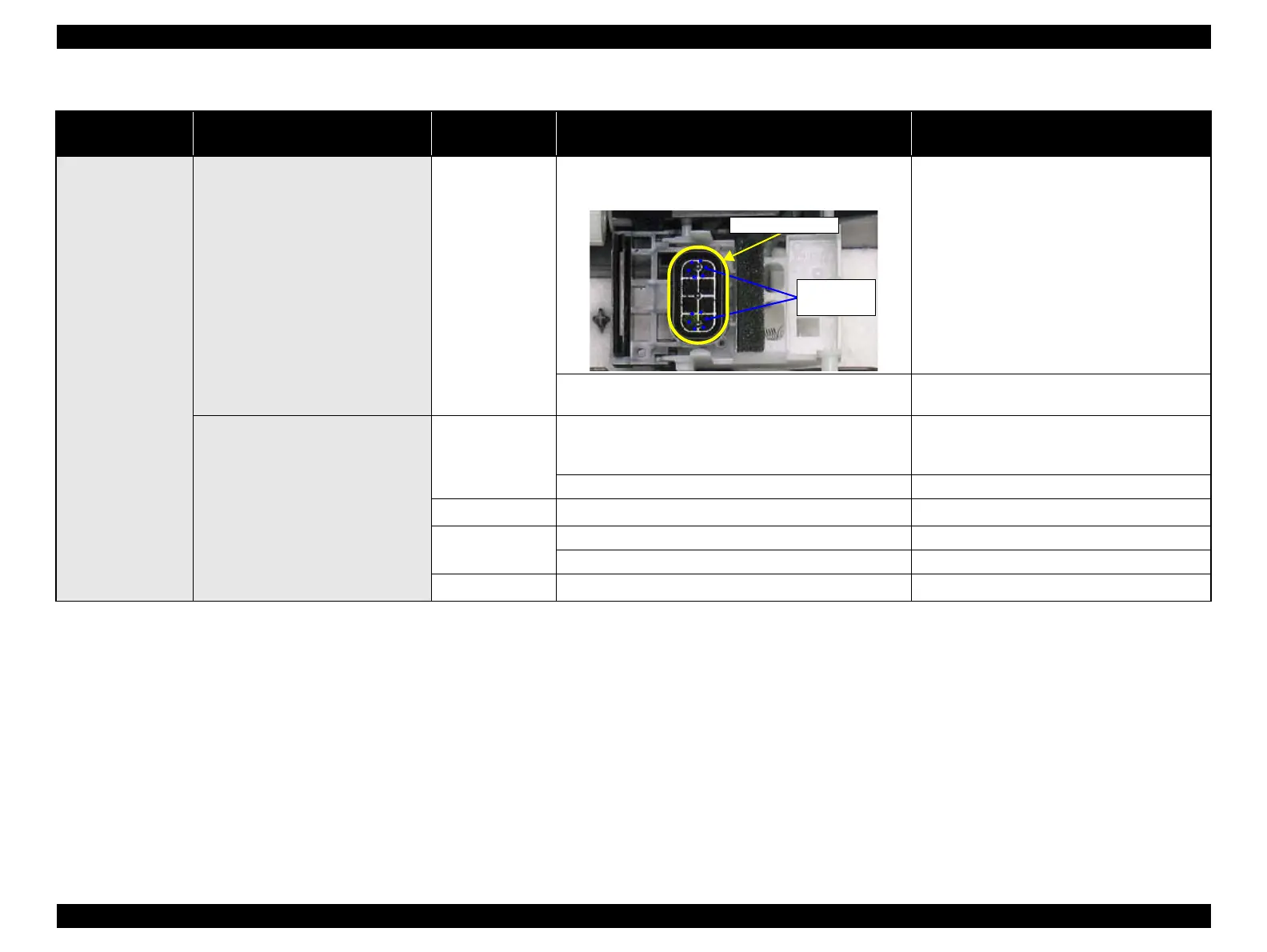 Cleaner Blade 1. Check if the Cleaner Blade has paper dust or bending. 1. Replace the Cap Assy with a new one.