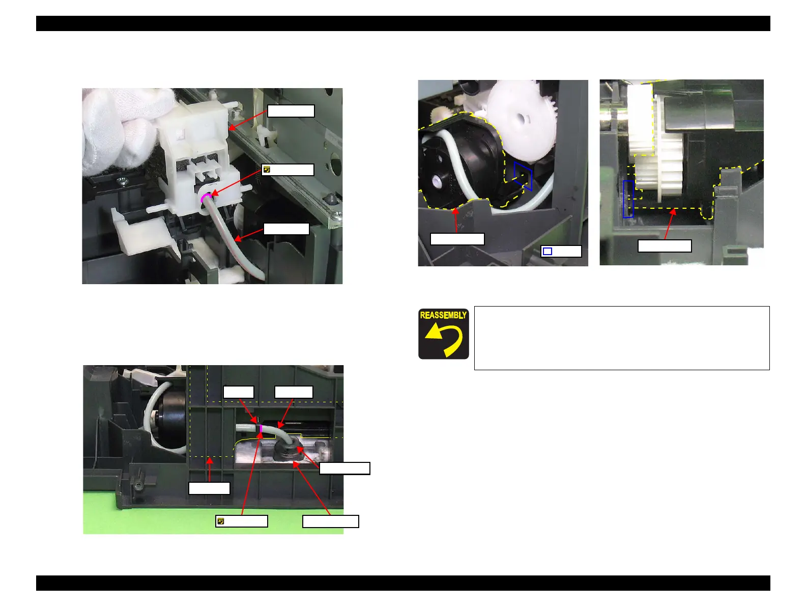 6. Pull out the Waste Ink Tube through the rear of the Cap Assy, and remove the