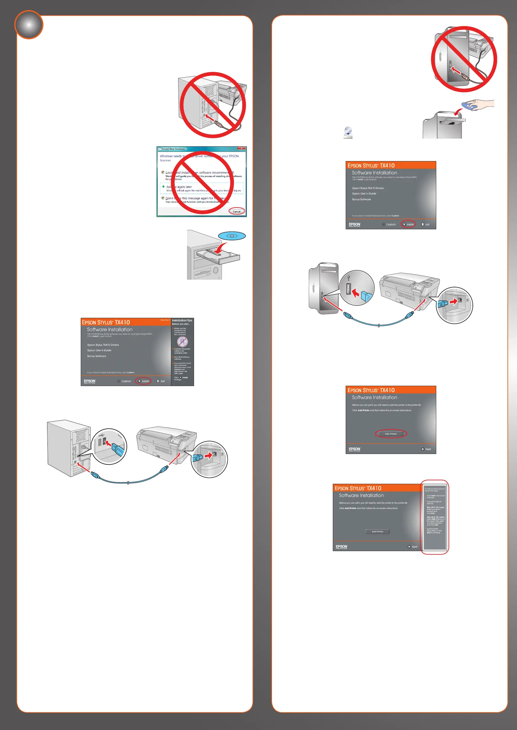 2 Insert the Epson Stylus TX410 software CD.