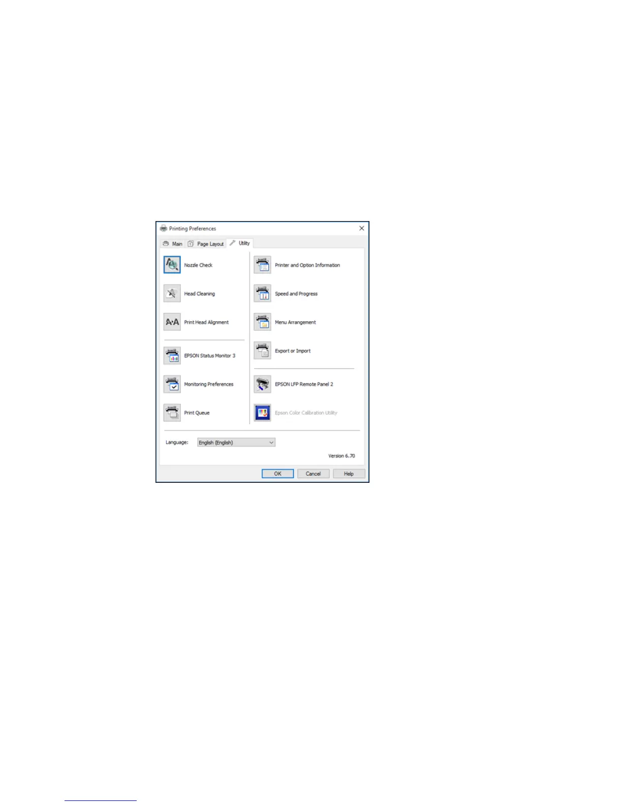 • Nozzle Check to print a nozzle check pattern to check whether the print head nozzles are