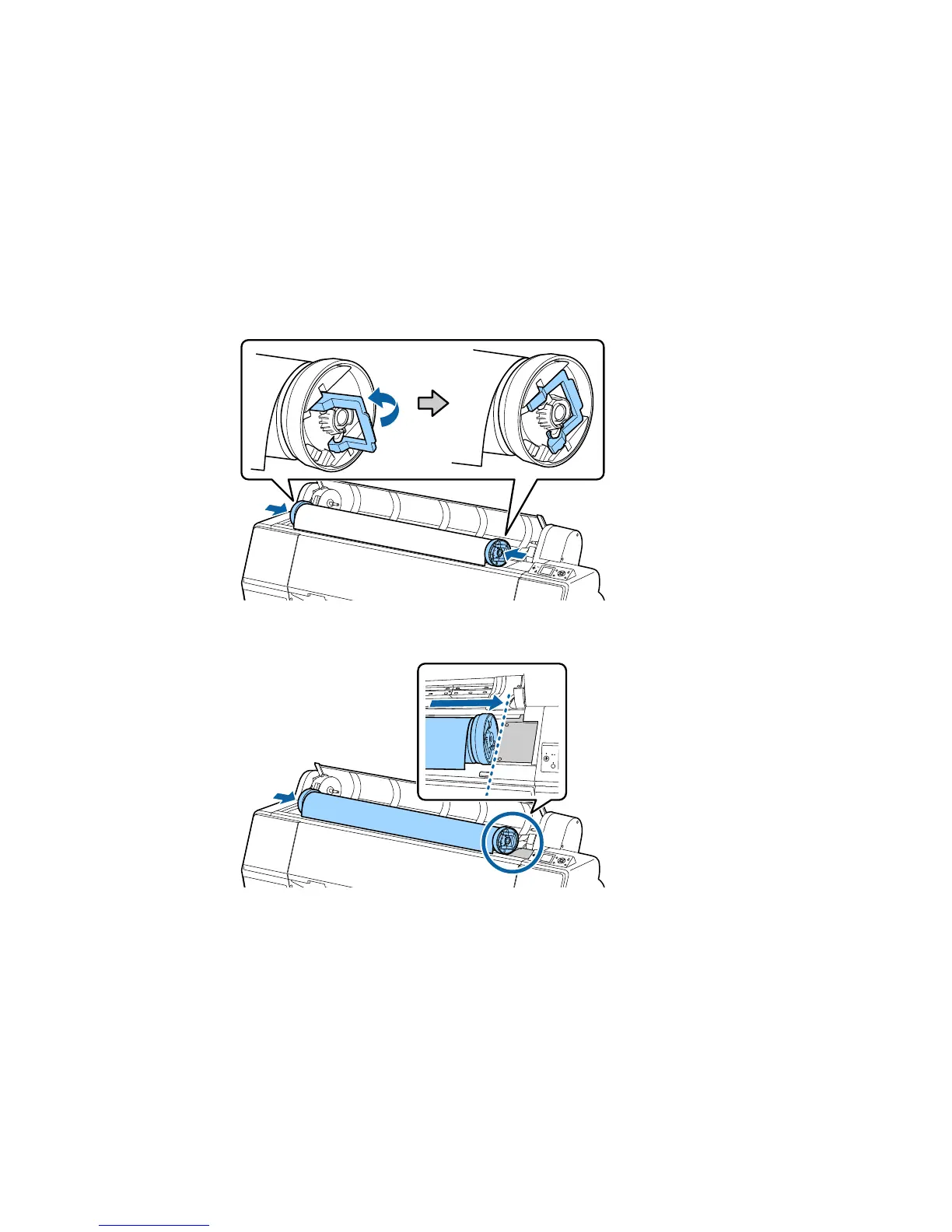 6. Push the adapters into the paper core at both ends of the roll. Then push down the tension levers.