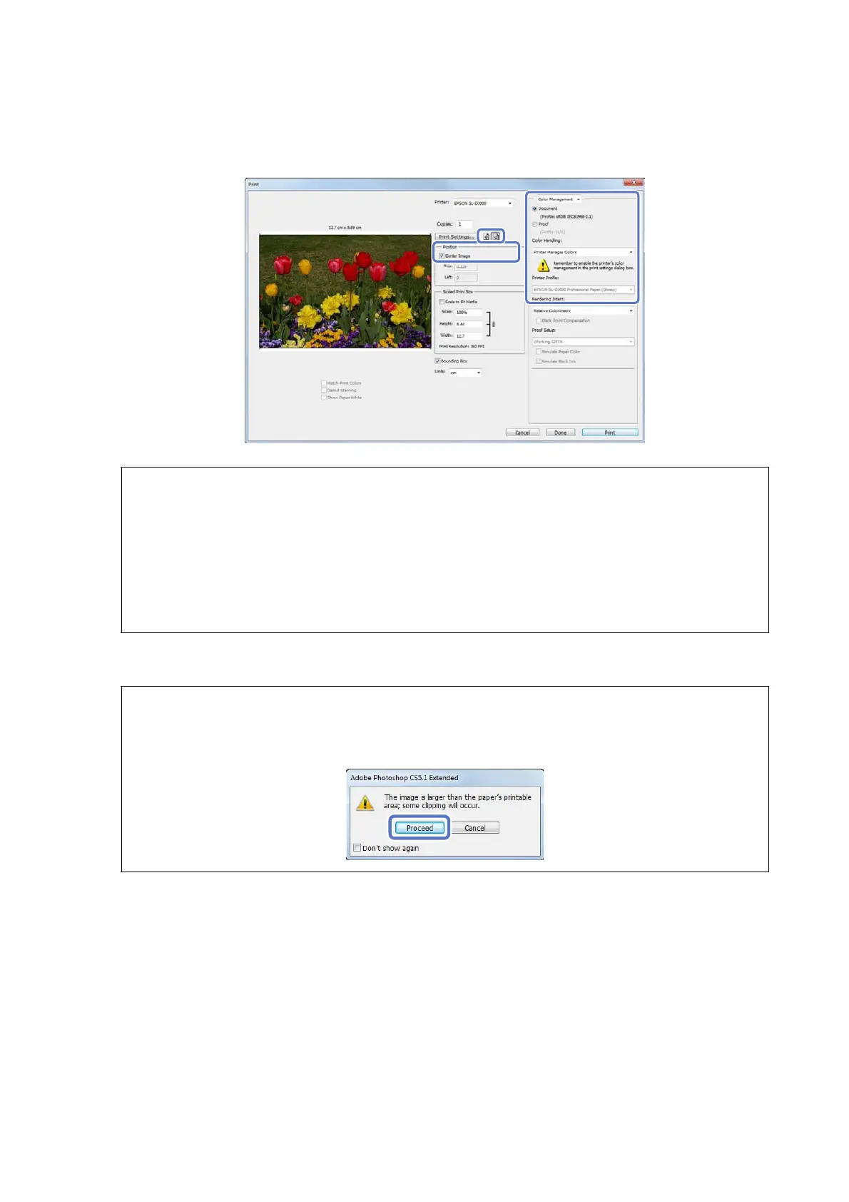 Click Proceed. If you click Cancel, printing is cancelled and you are returned to the application's screen.