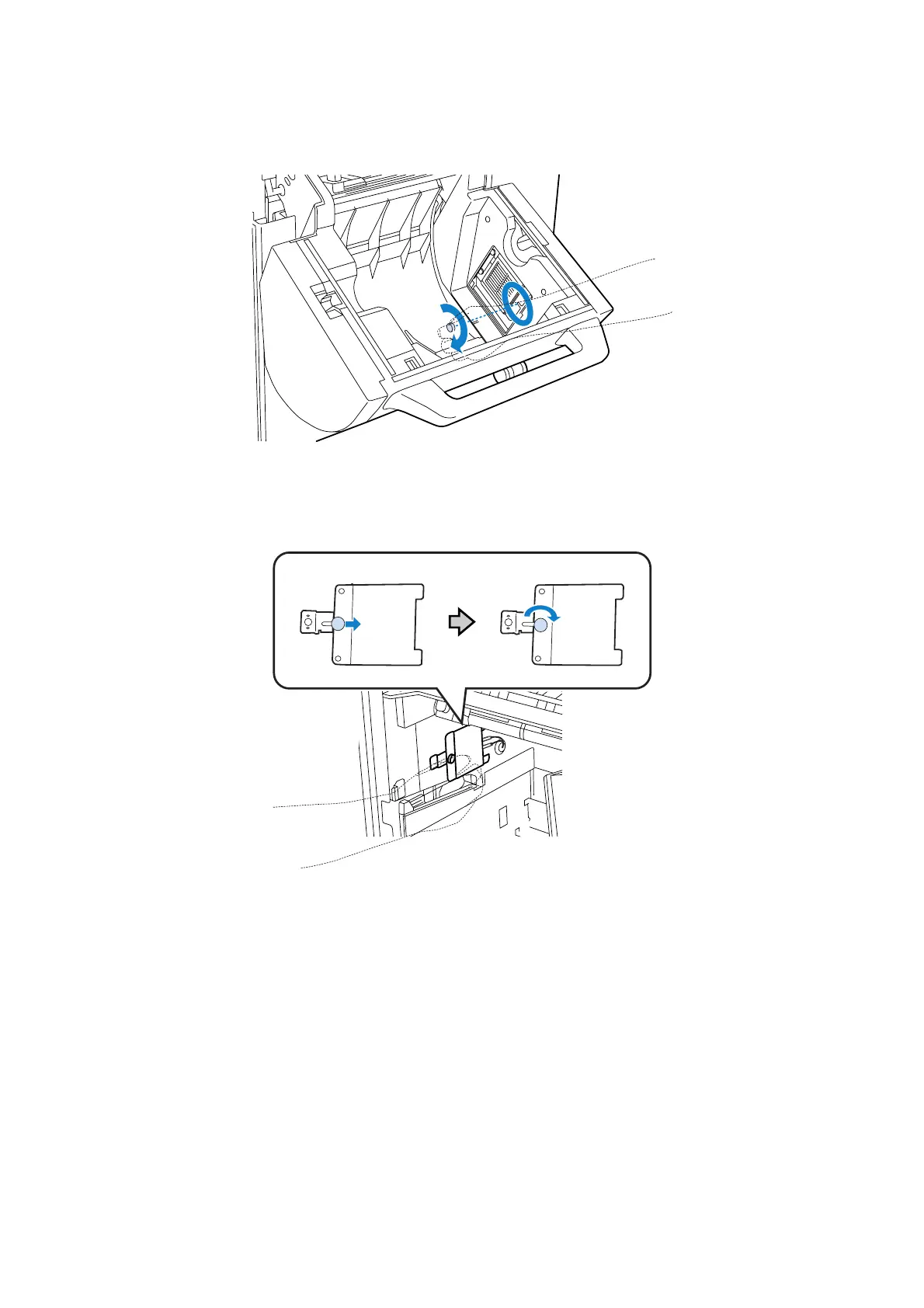 For the rear roll paper feeder, after sliding the screw, turn it by hand to fix it in place.
