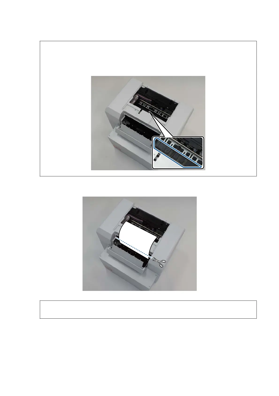 After cutting the paper, do not pull the paper inside the printer to the upper section.