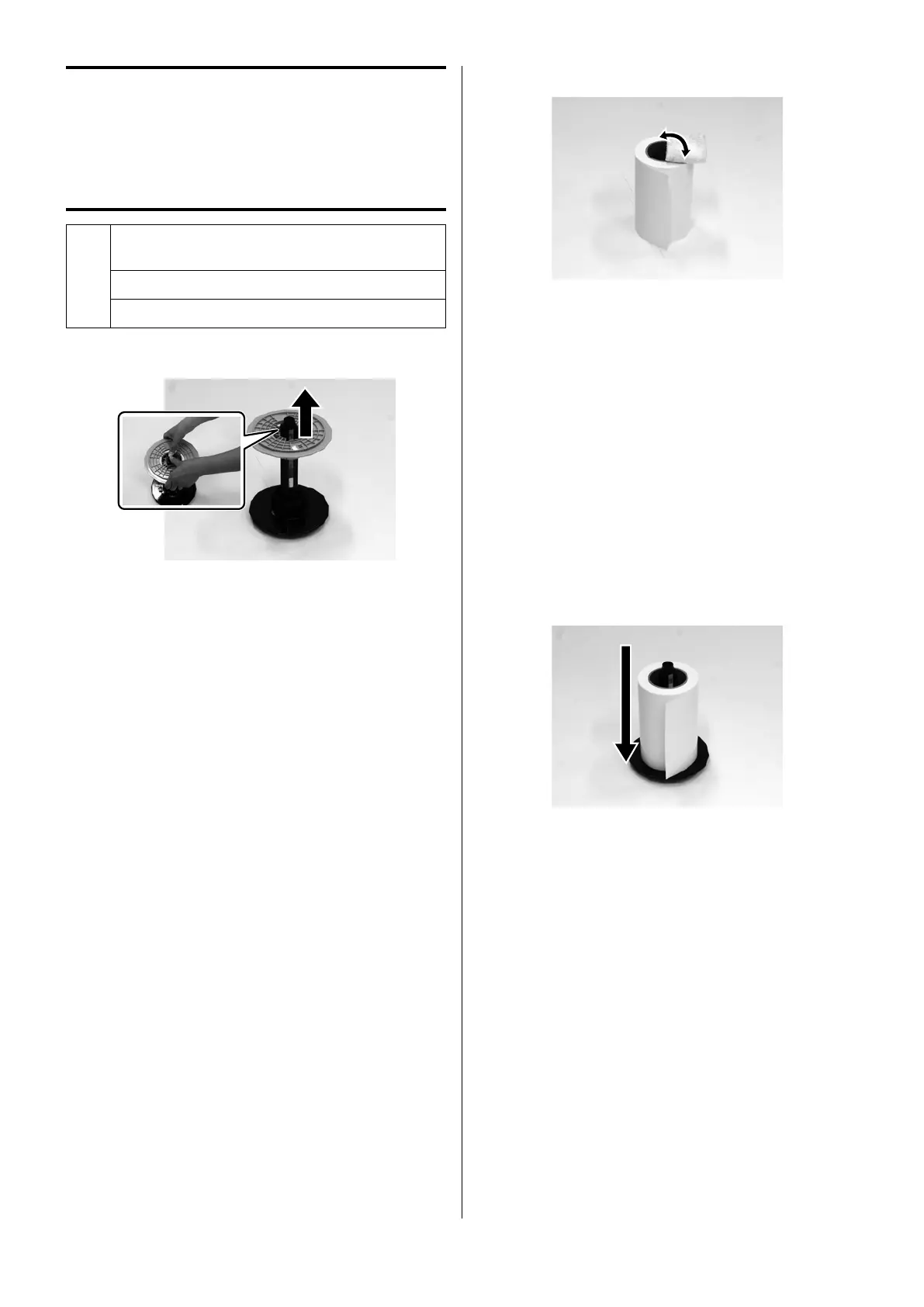 將中心部份放入滾軸單元,從上方查看時,紙張的捲繞