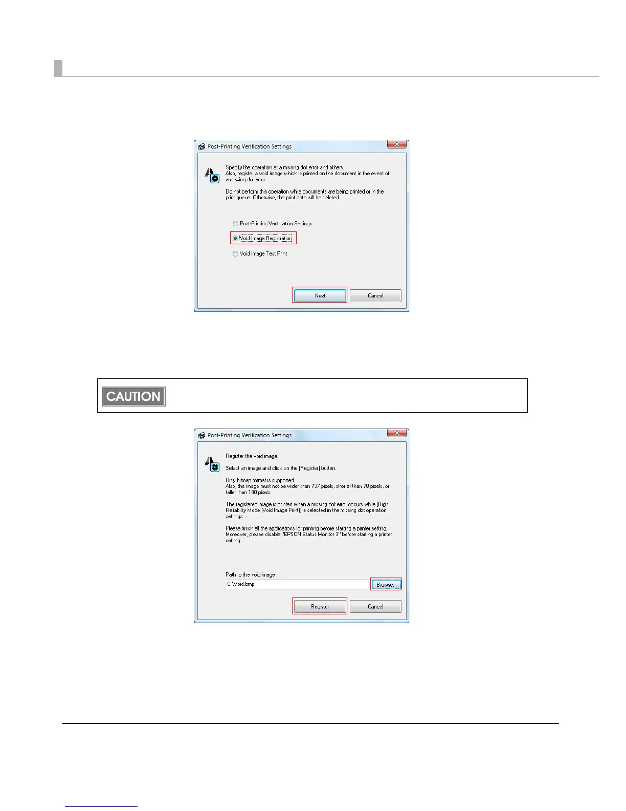 Click [Cancel] to terminate without performing the [Void Image Registration].